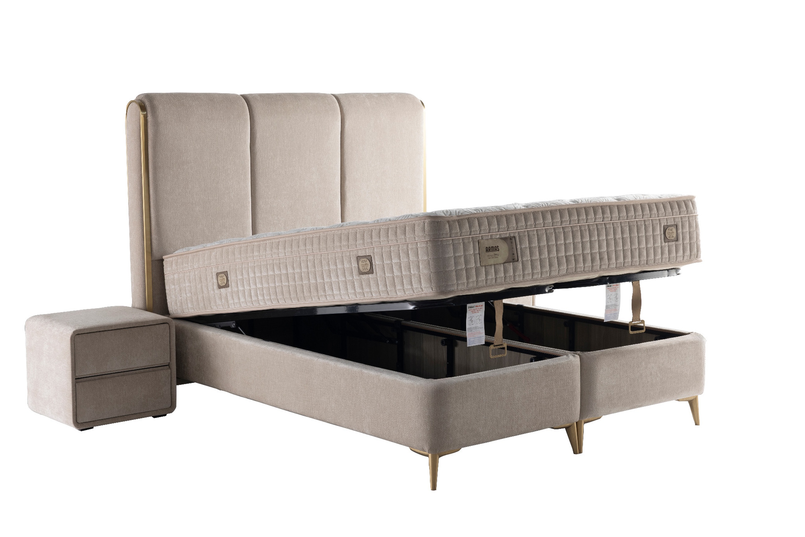 Le lit Armas est la combinaison parfaite entre design contemporain, confort et praticité, pour transformer votre chambre en un espace élégant et chaleureux.