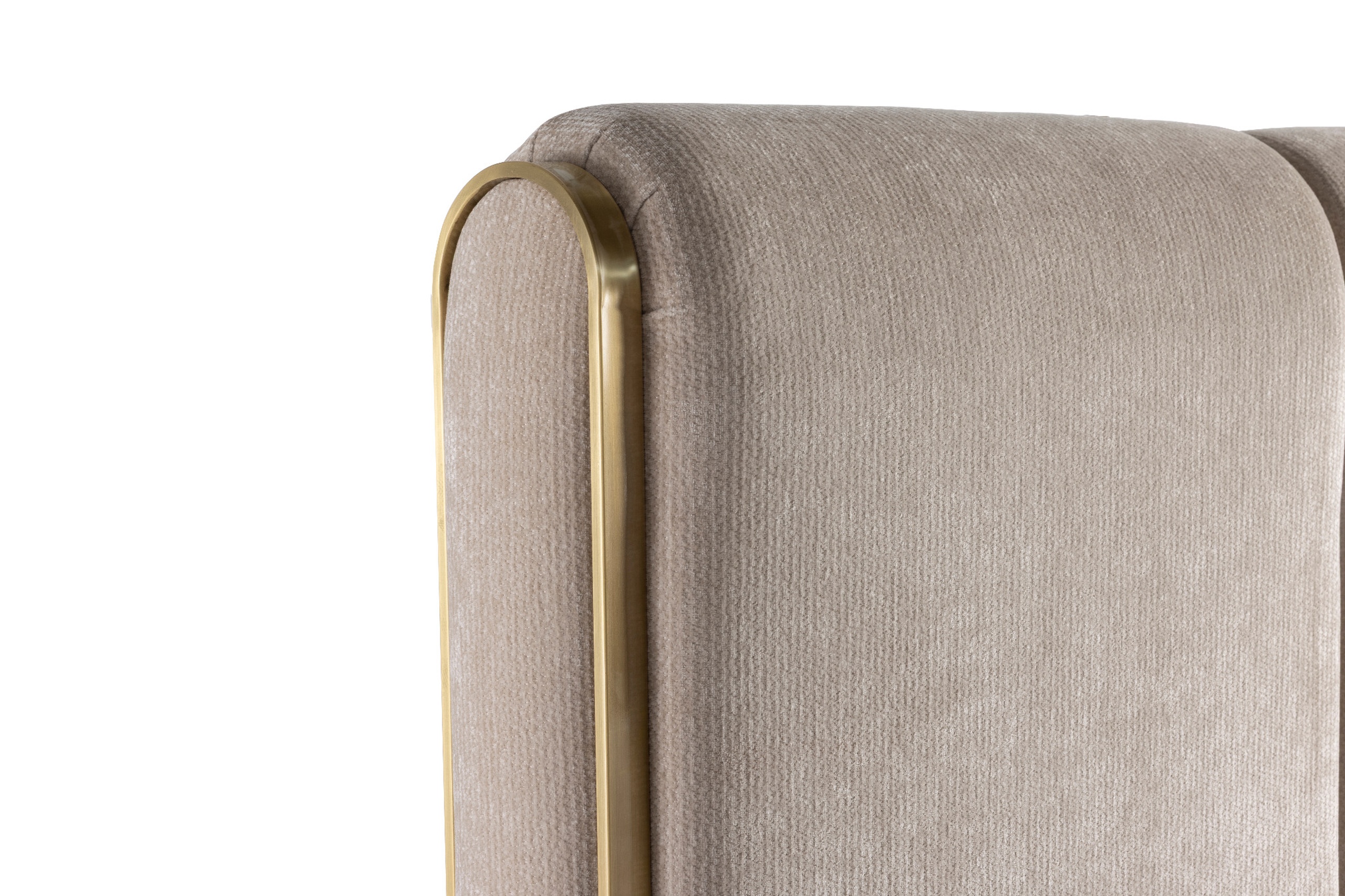 Le lit coffre Armas se distingue par son design raffiné et contemporain qui apporte une touche d’élégance à votre chambre. Sa tête de lit capitonnée aux lignes verticales, sublimée par des finitions élégantes et des pieds métalliques dorés, crée un style moderne et sophistiqué.