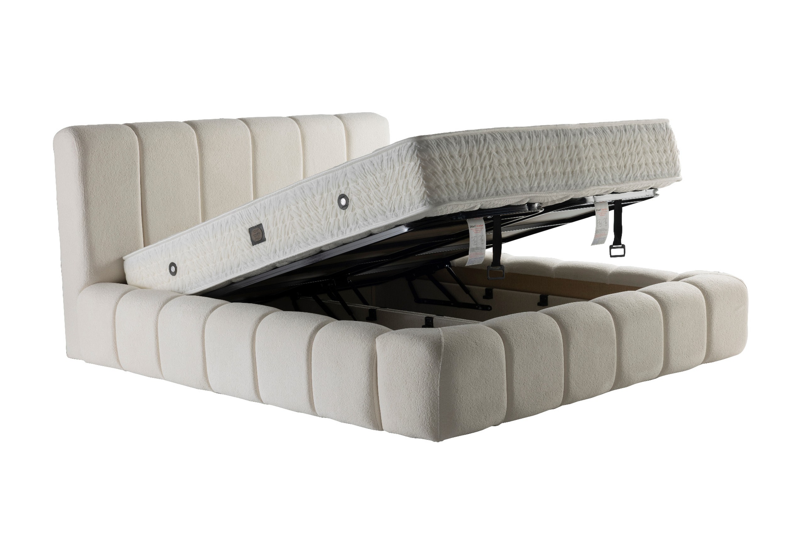 • Dimensions : 160×200 180×200 • Double coffre – capacité de rangement maximale de 18cm (25 cm de profondeur) • Structure métallique renforcée et durable • Sommier relevable sur vérins • Fonction : Lit coffre relevable avec espace de rangement