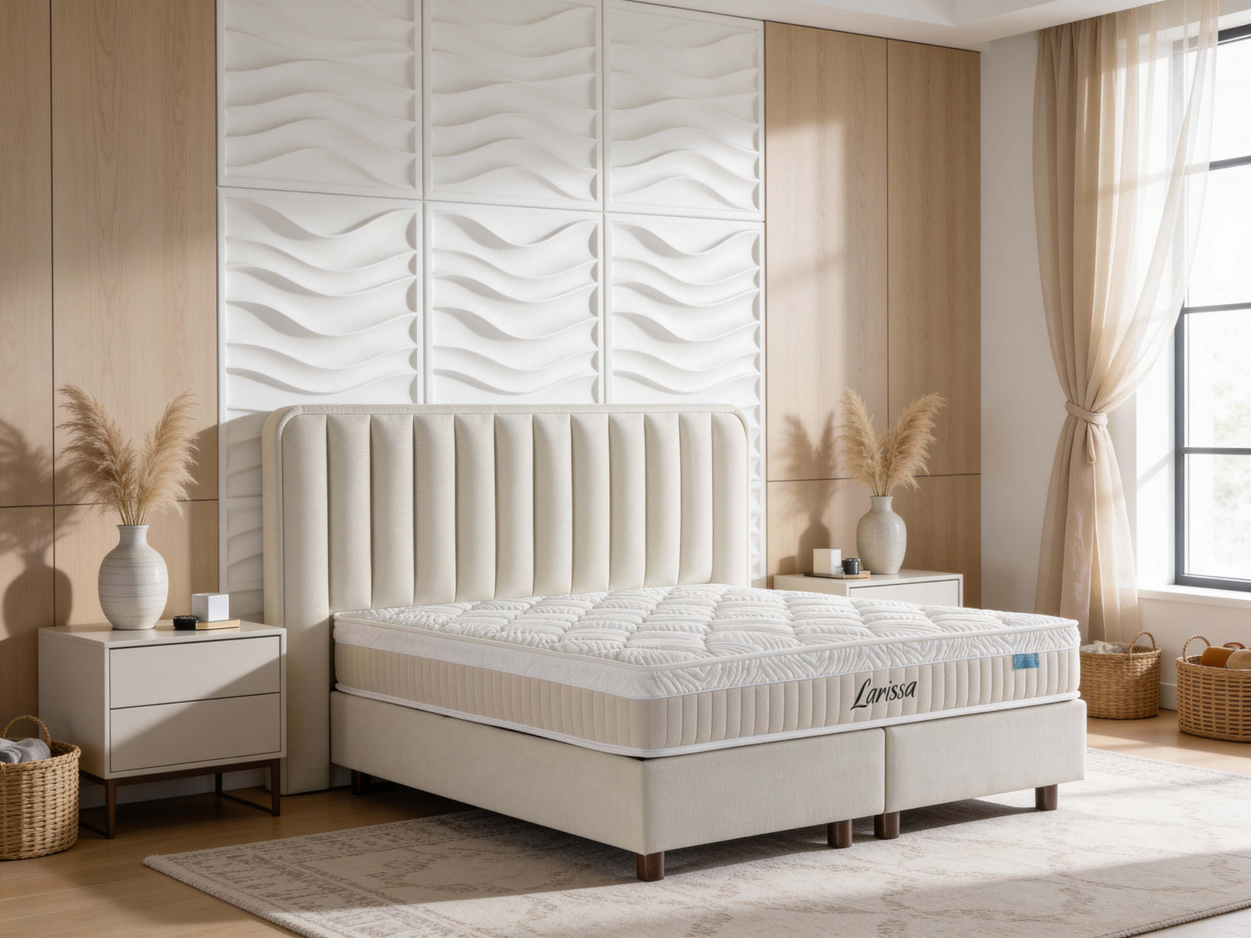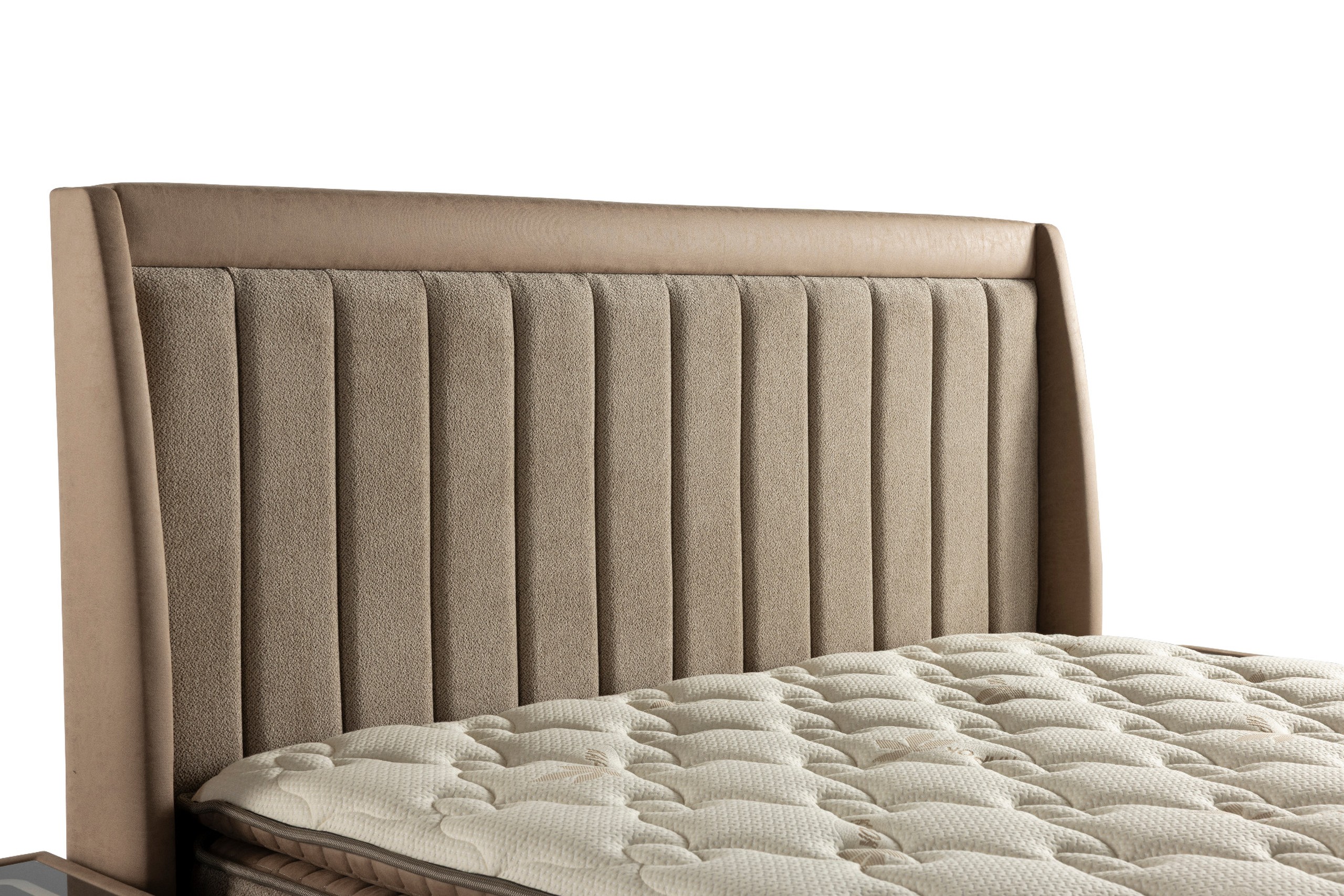 Le lit Kapadokya se distingue par son design moderne et élégant qui apporte une touche de sophistication à votre chambre. Sa tête de lit haute avec panneaux verticaux crée un style raffiné et harmonieux, idéal pour une décoration contemporaine.