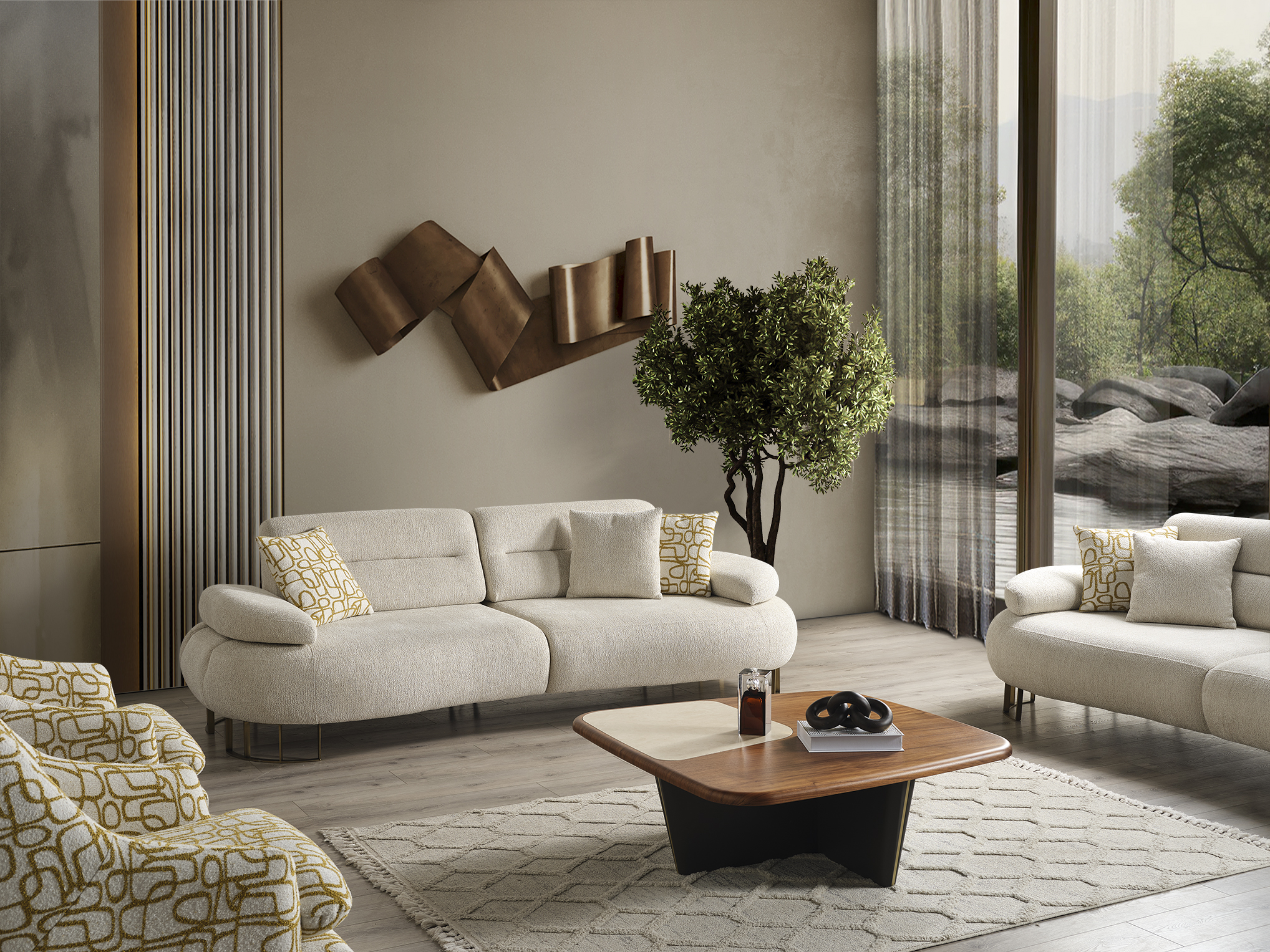 Le canapé Lotus est parfait pour créer un salon contemporain, chaleureux et raffiné, où confort et design s’unissent naturellement.