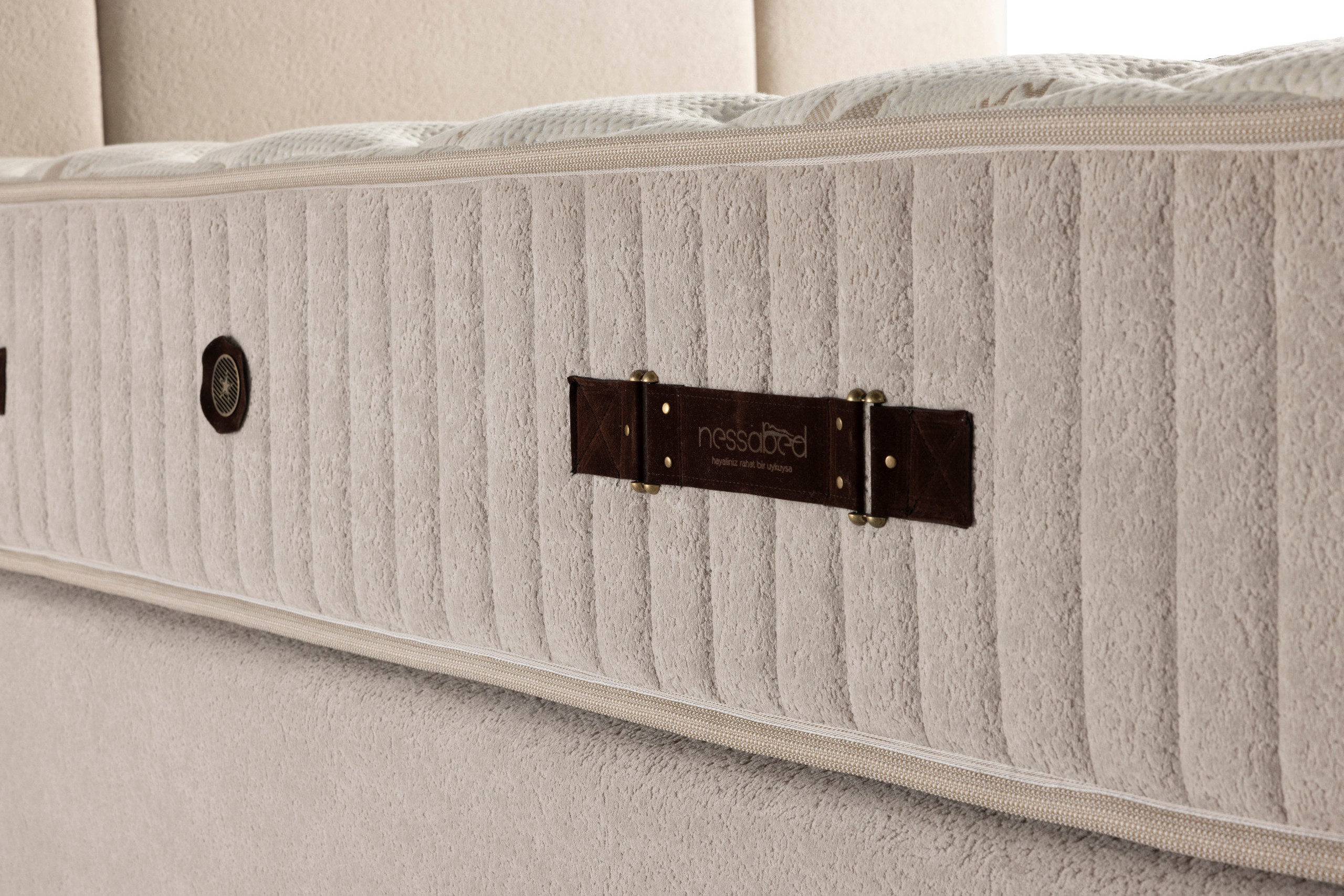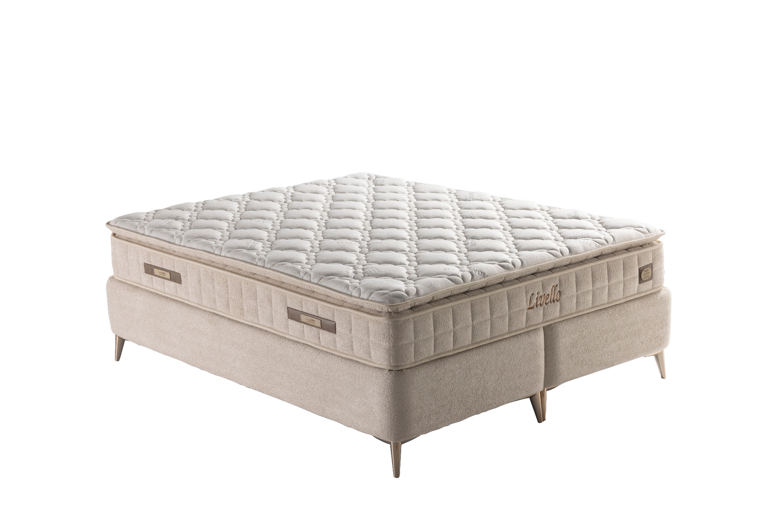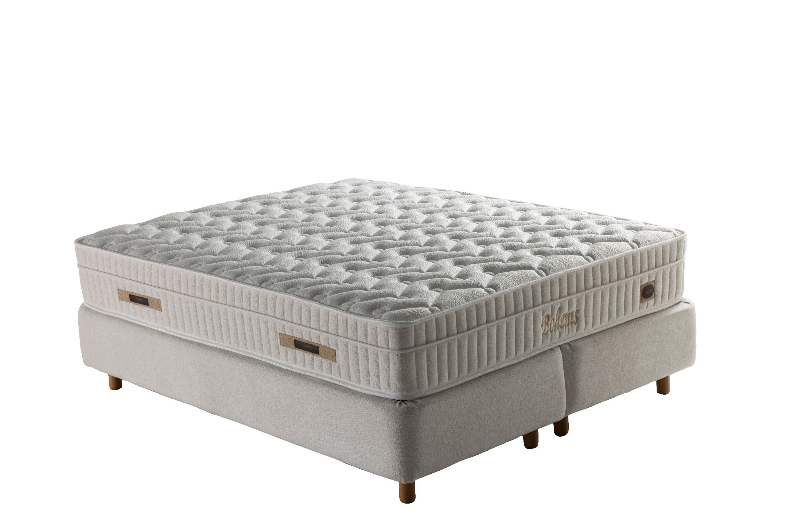 Association de ressorts ensachés, mousses de confort et fibres respirantes pour un maintien optimal et un confort durable.